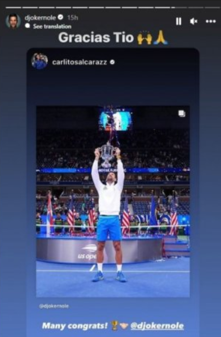 Zbog toga mu je Đoković na Instagram storyju odgovorio sa “hvala druže”. Na to je dodao i dva emotikona, što možete vidjeti ispod.