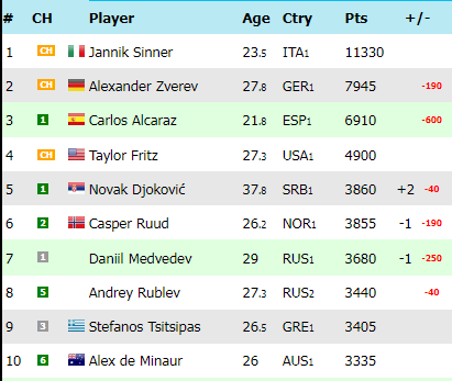 Holger Rune i Jack Draper su najveća iznenađenja turnira, dok Carlos Alcaraz i Danil Medvedev žele da potvrde status favorita. Jannik Sinner, iako nije igrao, ostaje ubjedljivo na vrhu ATP liste zbog neuspjeha Alexandera Zvereva, a može profitirati i srpski teniser.