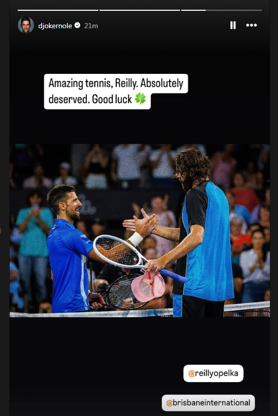 Nešto manje od sat vremena nakon što je izgubio meč od njega, Novak Đoković je poslao poruku američkom teniseru Reillyju Opelki.