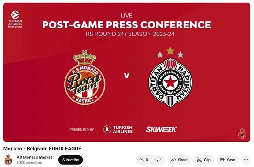 Interesantna situacija dogodila se nakon završenog meča, odnosno prije obraćanja medijima, pošto je na zvaničnom Youtube kanalu Monaca umjesto grba Zvezde na glavnoj fotografiji streama osvanuo grb Partizana.