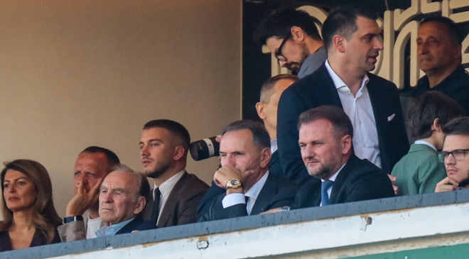 Odmah do Ljajića je ministar policije Ivica Dačić, a prisutan je i Milija Babović, vlasnik kompanije “Ktitor”, dugogodišnji sponzor “crno-bijelih”.