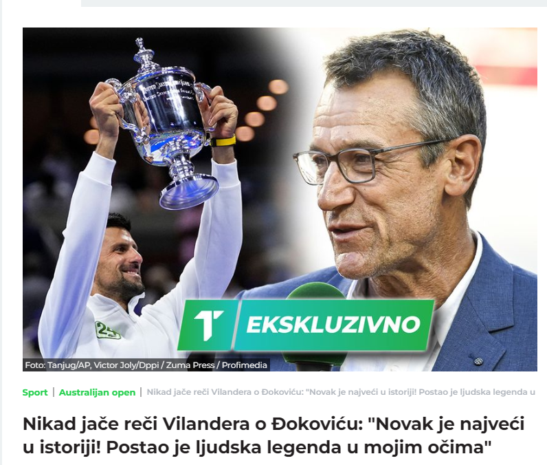 Možda je jedan jedini i više niko drugi, jer američki fudbaler Tom Brady više ne igra, Tiger Woods više ne igra, a Đoković i dalje igra. On je jedna od nekoliko ljudskih osoba koja i dalje pomjera granice među sportistima. Novak sa svakom godinom tokom koje igra pomjera granice sve više i više i na kraju će postati osoba koja nam govori “hej, možeš bolje od toga, možeš bolje, bolje, bolje, do kraja”. Novak je zbog stvari koje radi postao ljudska legenda u mojim očima”, zaključio je Wilander za “Telegraf”.