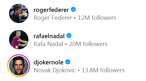 Novak Đoković je na drugom mjestu na Instagramu sa 13,8 miliona pratilaca, a Roger Federer, penzionisani teniski as, na trećem sa 12 miliona pratilaca.