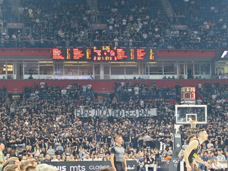Bit će dosadno bez vas“, pisalo je na transparentu navijača Partizana.