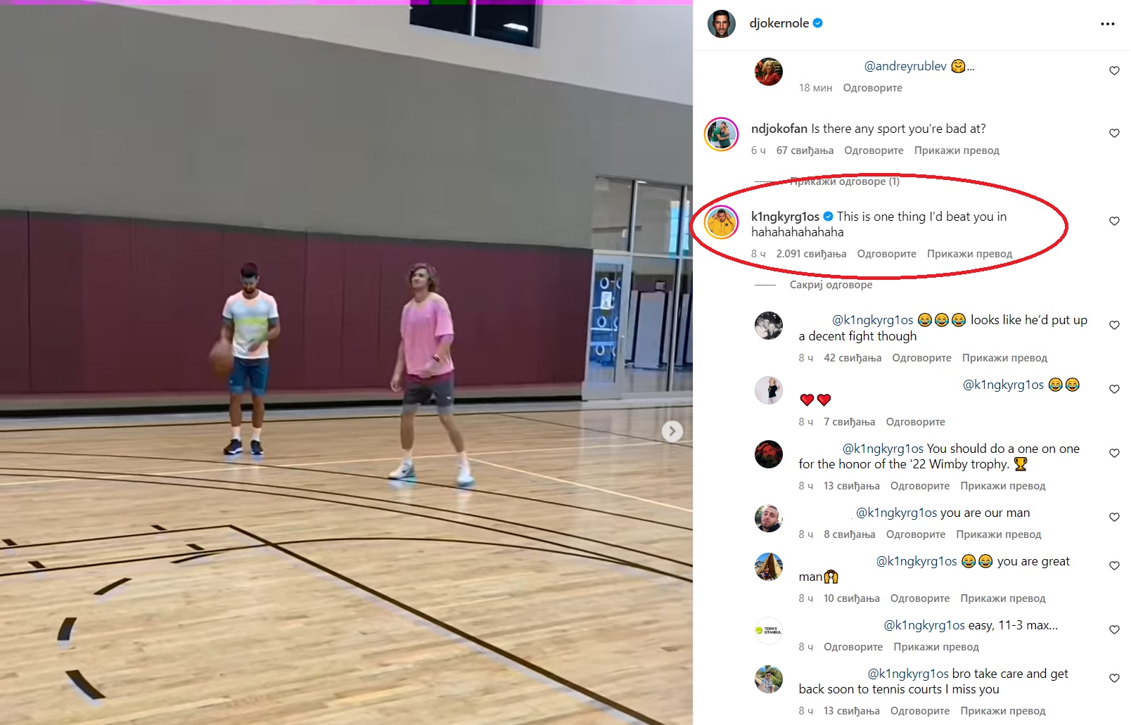 On prolazi dug proces oporavka dok se Novak sprema za polufinale Cincinnatija sa Alexanderom Zverevom, a mišljenja o onom što je Nick rekao su različita. Uglavnom bi ljudi voljeli da vide taj okršaj na košarkaškom terenu, ali ima i onih koji sumnjaju, pa mu poručuju: “U košarci da pobjediš Srbina?”.