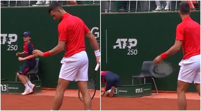 Dječak koji je zadužen za skupljanje loptica na turniru u Genevi završio je na zemlji dok se najbolji teniser svijeta Novak Đoković zagrijavao za meč protiv Yannicka Hanfmanna.