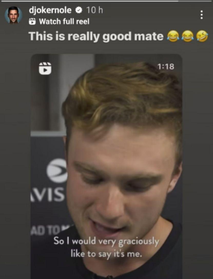 Druže, ovo je stvarno dobro!”, napisao je Đoković na Instagramu.