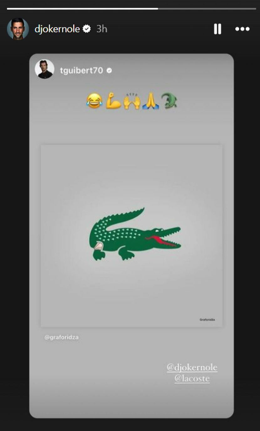 Na fotografiji se vidi krokodil, simbol njegovog sponzora “Lacoste”, kojem je povrijeđeno koljeno u zavoju. Jasna je simbolika fotografije.