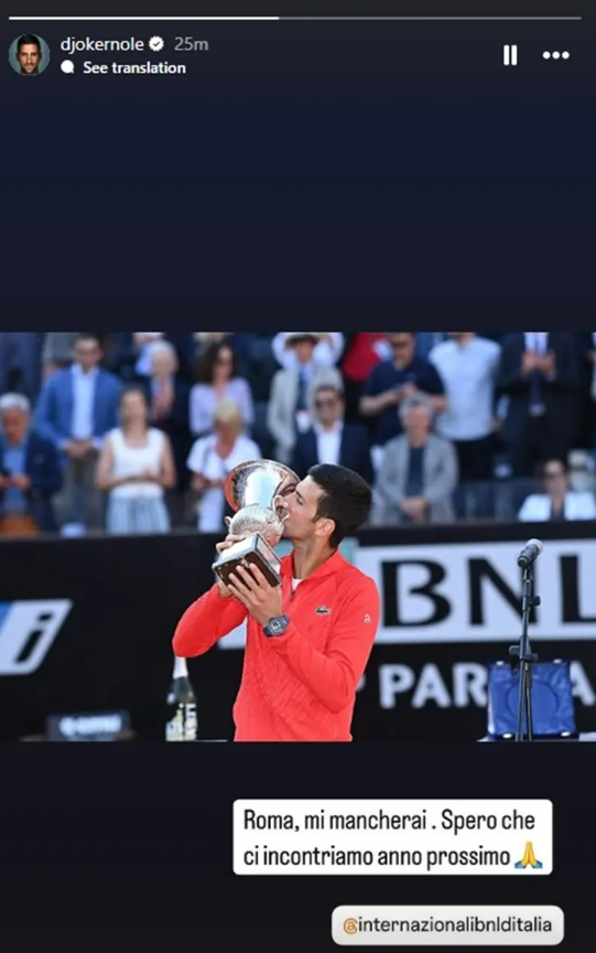 Nakon što su organizatori objavili informaciju da Đoković neće igrati narednog mjeseca u Rimu, ubrzo se oglasio i sam Đoković na društvenim mrežama. Sve je stalo u dvije rečenice.