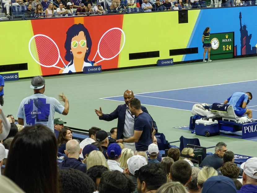 U trenutku kada je Novak servirao, jedan od navijača ga je ometao i nešto dobacivao. Đoković se požalio sudiji, da bi ga ovaj odmah opomenuo.