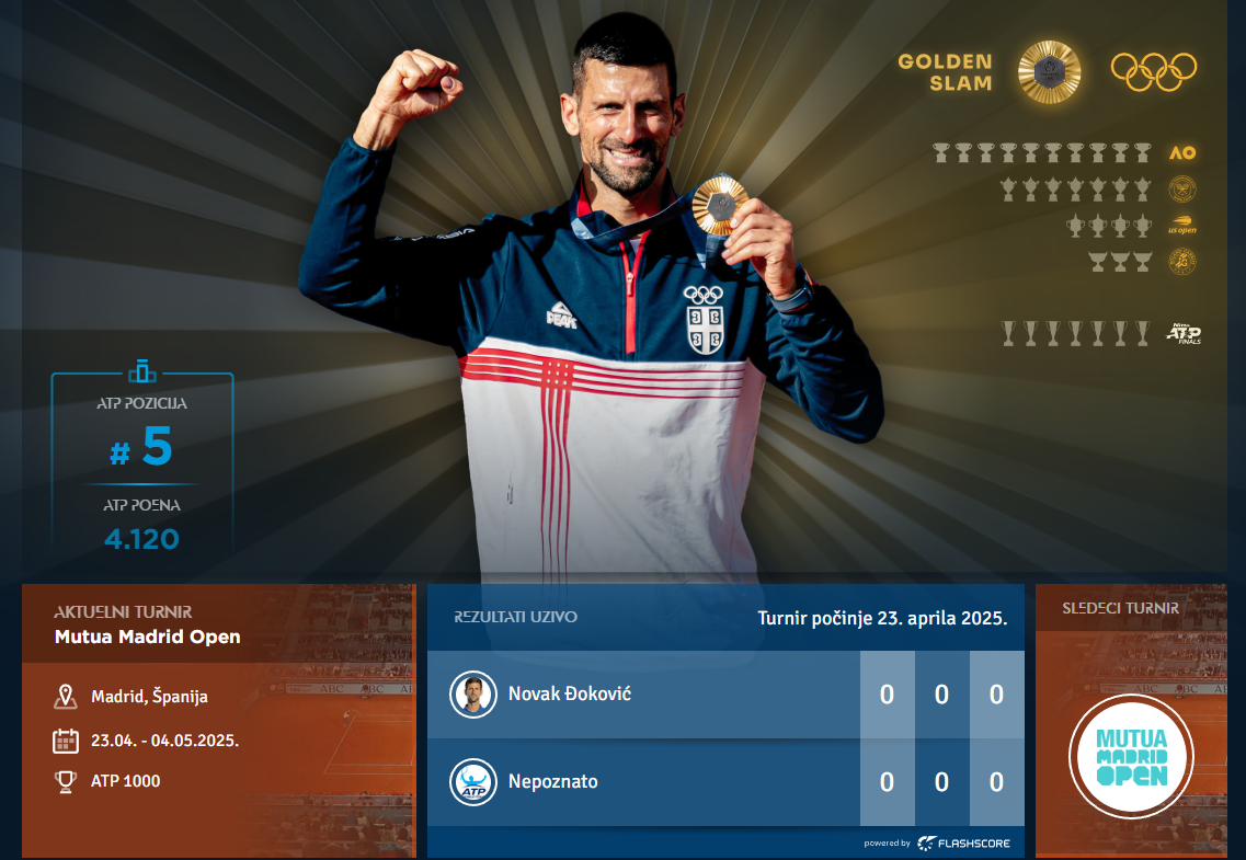 Naime, na zvaničnoj stranici Novaka Đokovića je objavljeno da će nastupiti na predstojećem Mastersu u Madridu. Turnir iz serije 1000 se održava od 23. aprila do 4. maja.