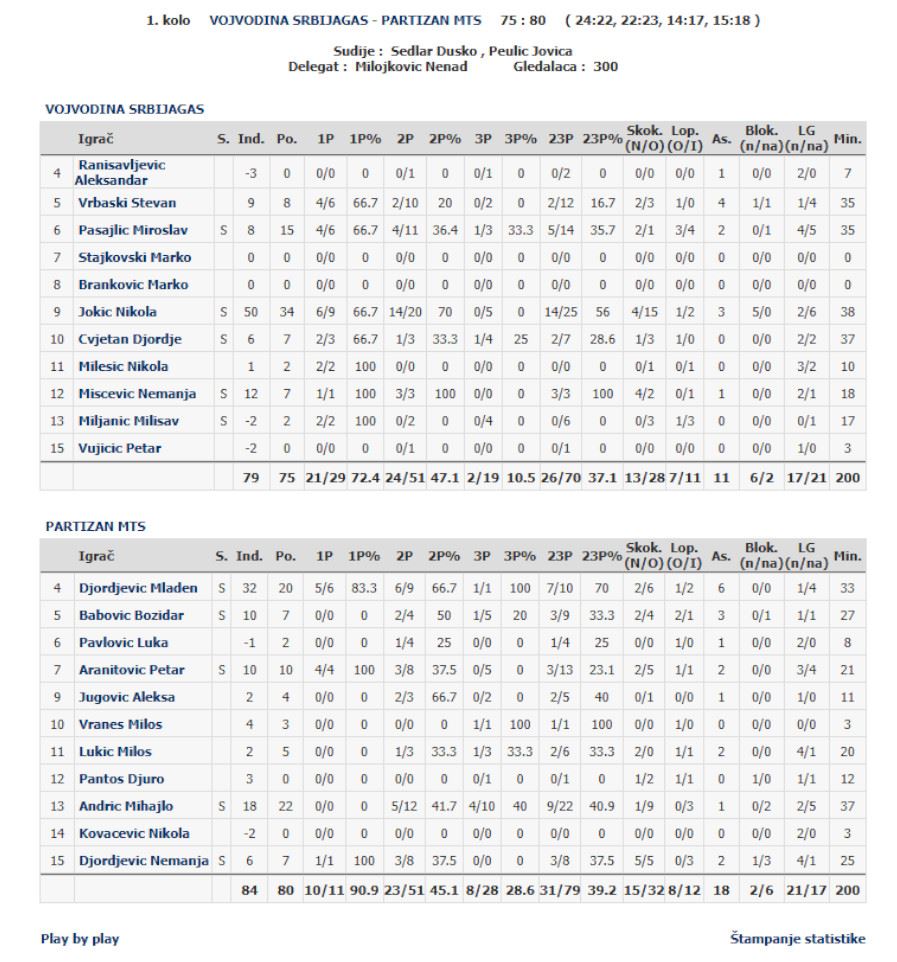 Meč Partizana i Vojvodine u tada juniorskoj ligi Srbije obilježio je upravo Jokić, koji je u porazu svog tima (80:75), utakmicu protiv “crno-bijelih” okončao sa indeksom 50.