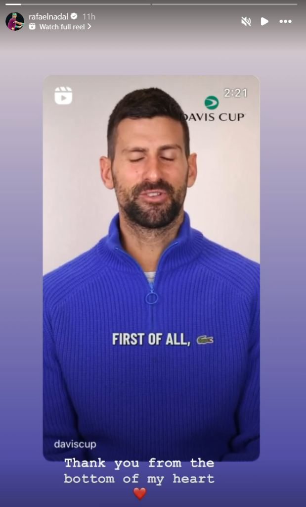 Legend to legend 💚@djokernole pays tribute to his greatest rival and friend, @RafaelNadal #DavisCup #GraciasRafa pic.twitter.com/snjWQ8xVjz