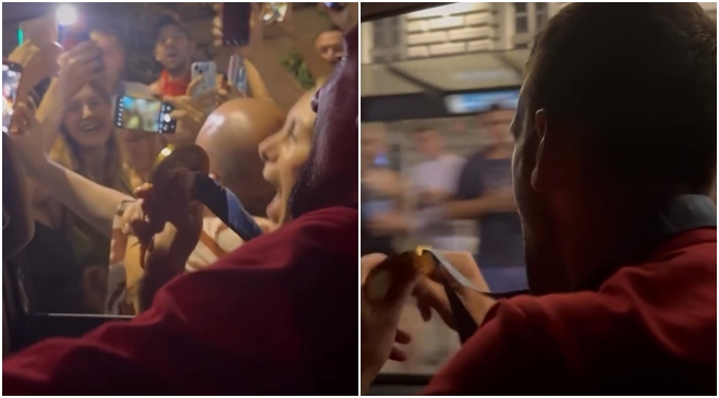 Novak se sa navijačima footgrafisao, pokazivao zlatnu medalju. U jednom momentu je do pola izašao iz automobila u pokretu, a nekim oduševljenim navijačima je dozvolio da ga poljube.
