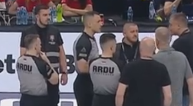 Potom su sudije napustile parket, da bi se potom vratile i donijele odluku o kompletnom pražnjenju dvorane.