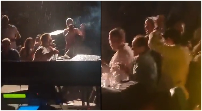 Tokom nastupa popularnog pjevača počela je da pada kiša koja nije posustajala, a u jednom trenutku je Vlado zastao i okrenuo se ka Noletu. “Pa, nismo na Wimbledonu da prekinemo”, rekao je on, a Novak, Jelena i publika su oduševljeno reagovali.
