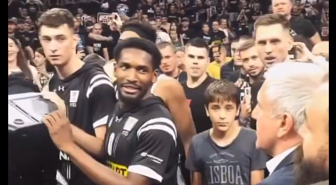 Nemoj slučajno, Aleksa, Smajli, Anđušiću, nemoj da ste igrali slučjano! Ići ćete preko vaših navijača. Nemoj slučajno da igrate, boli vas k… za ovu Čovićevu ligu”, rekli su “Grobari”, koji su se također obratili i Željku Obradoviću.